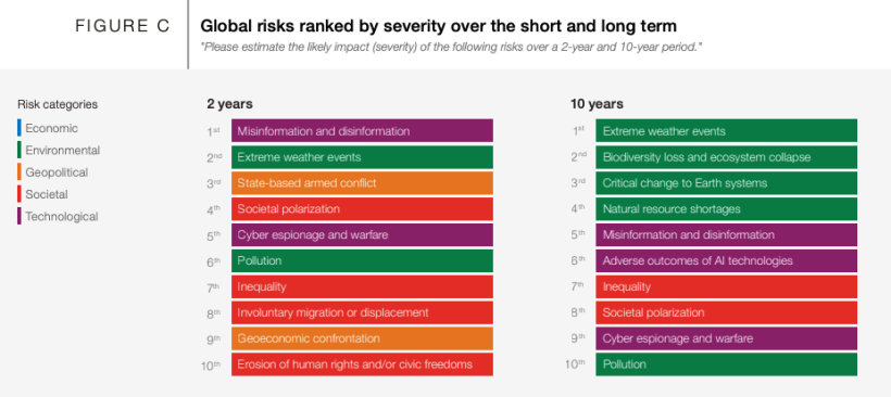 【参考】【国際】世界経済フォーラム、グローバルリスク報告書2024年版発表。気候変動系1位。偽情報も(2024年1月11日)