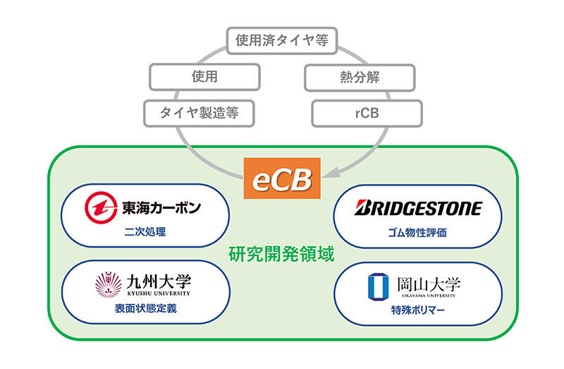 ブリヂストン、東海カーボン、九州大学、岡山大学の4者は1月27日、使用済みタイヤの熱分解によるケミカルリサイクル技術で、再生カーボンブラック(rCB)を生成する共同プロジェクトを開始したと発表した。