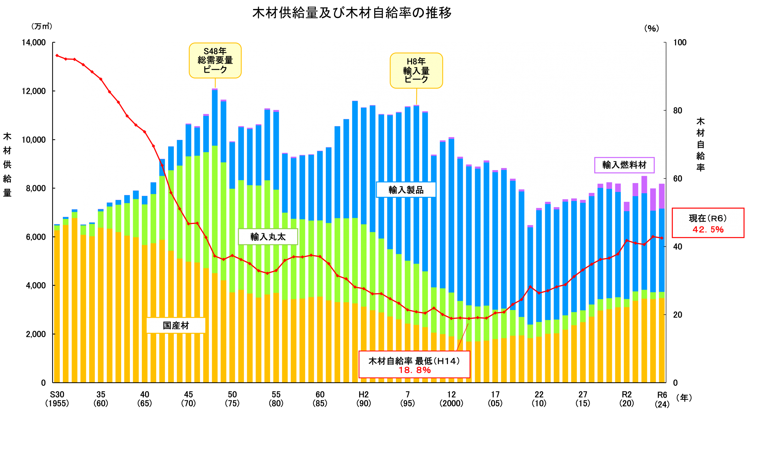 【参照ページ】「令和6年(2024年)木材需給表」の公表について
