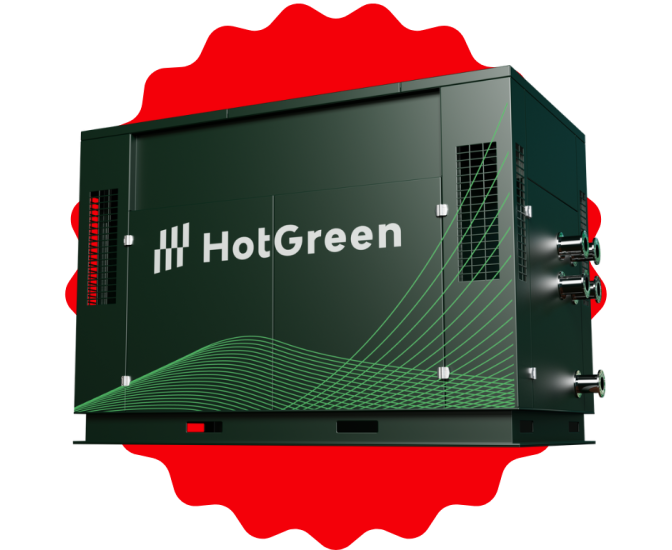 HotGreenのヒートポンプは、電気で冷媒を圧縮し、外気や地熱等から残留熱を抽出。その熱を工場の既存配管を通じ、施設内で放出することで動力を供給する。同技術では、従来ボイラー比で、エネルギー効率を4倍高めることができる。