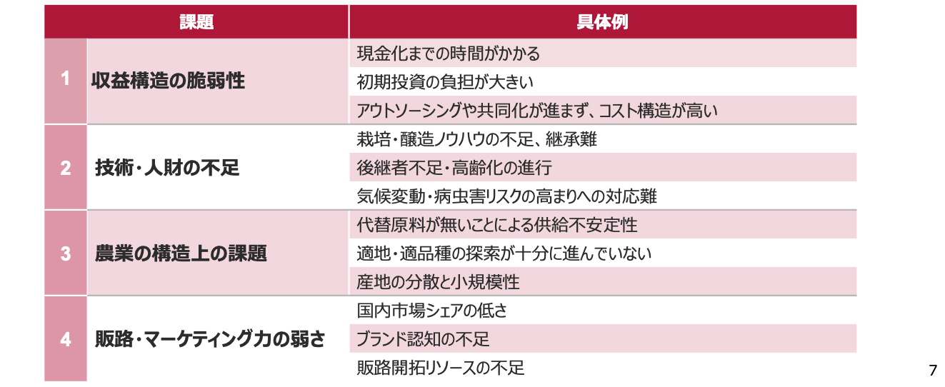 国税庁のデータによると、日本国内のワイナリー数は直近10年で200以上急増し、2025年には519カ所となった。しかし、国内ワイナリーの91.6%が小規模生産者であり、収益面では赤字の割合は31.9%、低収益が11.7%となっている。また、ぶどうの収穫量も過去5年で減少傾向となっている。